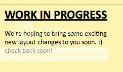 so sorry for the lack of action around here. we're trying to see about re-vamping the layout of the blog a little, as it is a little bit cluttered and messy. so, do give us some time.. and we'll try to make the changes asap.